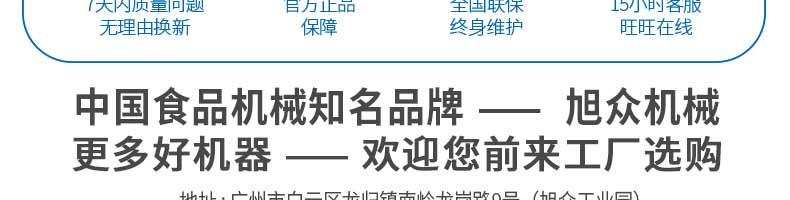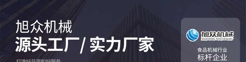 廣州旭眾食品機(jī)械有限公司是一家集科研開發(fā),生產(chǎn)設(shè)計(jì),營銷服務(wù)為一體的現(xiàn)代化生產(chǎn)企業(yè)。現(xiàn)代化生產(chǎn)車間,精湛制造技術(shù),所產(chǎn)機(jī)械歷經(jīng)市場重重考驗(yàn),不斷贏得海內(nèi)外客戶的贊譽(yù)。