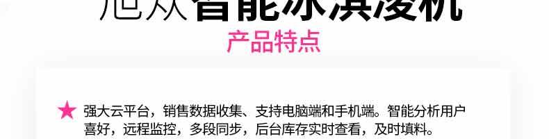 無(wú)人售貨冰淇淋機(jī), 人工成本越來(lái)越高,無(wú)人店、無(wú)人售賣機(jī)必將是一個(gè)趨勢(shì)。簡(jiǎn)單而又重復(fù)的勞動(dòng)(售賣)必將被智能無(wú)人替代。無(wú)人售貨自助冰淇淋機(jī)支持多種支付方式,支持遠(yuǎn)程監(jiān)管功能,支持預(yù)冷保鮮,支持多種口味混合,自動(dòng)清洗少料報(bào)警。無(wú)需人工、場(chǎng)地?zé)o限制。