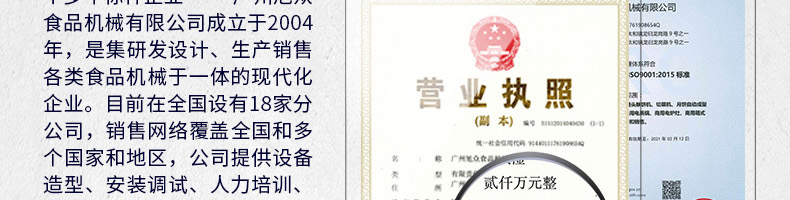 廣州旭眾食品機(jī)械有限公司是一家集科研開發(fā),生產(chǎn)設(shè)計(jì),營銷服務(wù)為一體的現(xiàn)代化生產(chǎn)企業(yè)?,F(xiàn)代化生產(chǎn)車間,精湛制造技術(shù),所產(chǎn)機(jī)械歷經(jīng)市場重重考驗(yàn),不斷贏得海內(nèi)外客戶的贊譽(yù)。