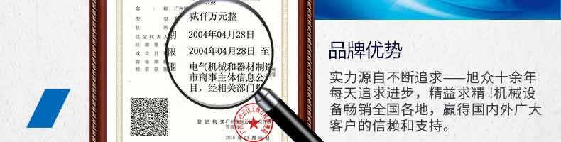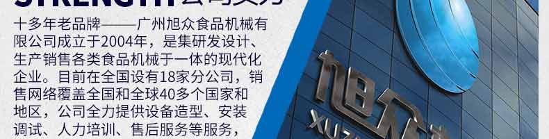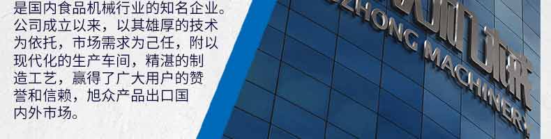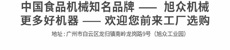 廣州旭眾食品機(jī)械有限公司是一家集科研開發(fā),生產(chǎn)設(shè)計,營銷服務(wù)為一體的現(xiàn)代化生產(chǎn)企業(yè)?,F(xiàn)代化生產(chǎn)車間,精湛制造技術(shù),所產(chǎn)機(jī)械歷經(jīng)市場重重考驗,不斷贏得海內(nèi)外客戶的贊譽(yù)。