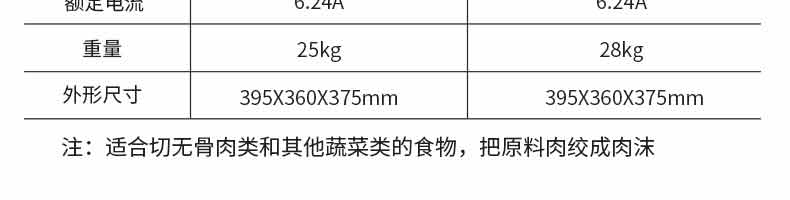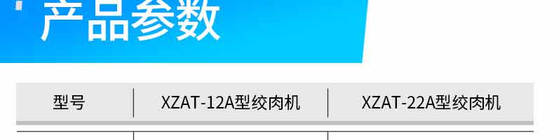 名稱XZAT-22A絞肉機 電源220V/50HZ 功率850W,1100W 產量250KG/h,300KG/h 尺寸395*360*375MM 重量25KG,28KG 規(guī)格 其他