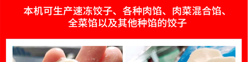 210豪華餃子機,實力強勁、超高效率一小時可做大約20000個餃子!可生產速凍餃子、各種肉餡、肉菜混合餡、全菜餡以及其他種餡的餃子。