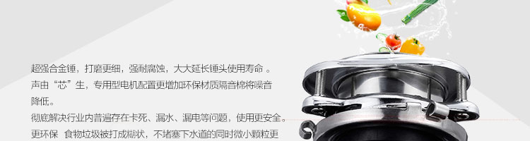 ACLQ37-廚房垃圾處理器,采用先進的研磨系統(tǒng),采用特殊合金錘粉技術(shù),能根據(jù)垃圾的強度,自動調(diào)節(jié)工作位置,處理垃圾的范圍和細度優(yōu)良。能夠有效地將食物垃圾研磨成細小顆粒,直接從下水管道排出,從而實現(xiàn)及時方便快捷的廚房清潔,滿足現(xiàn)代健康家居的要求。