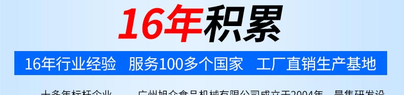 廣州旭眾食品機(jī)械有限公司是一家集科研開發(fā),生產(chǎn)設(shè)計,營銷服務(wù)為一體的現(xiàn)代化生產(chǎn)企業(yè)。現(xiàn)代化生產(chǎn)車間,精湛制造技術(shù),所產(chǎn)機(jī)械歷經(jīng)市場重重考驗(yàn),不斷贏得海內(nèi)外客戶的贊譽(yù)。
