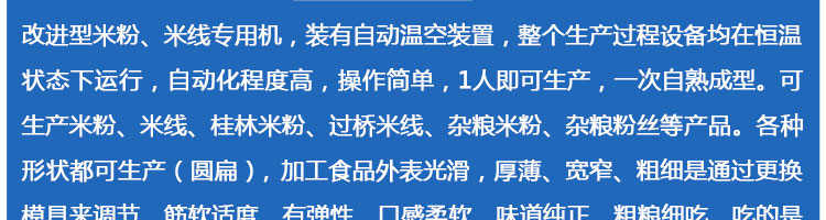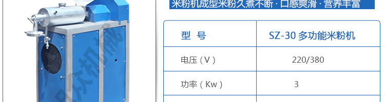SZ-30米粉機(jī),生產(chǎn)多樣性可生產(chǎn)米粉、米線、粉絲、粉條、、年糕、玉米面條、各種雜糧粉絲、各種面條、雜糧面條、彩色面條以及以紅薯、玉米、大豆、蠶豆等制成淀粉為原料的等多種食品而且每種食品厚薄、粗細(xì)等規(guī)格可根據(jù)需要任意調(diào)整。