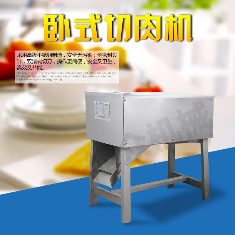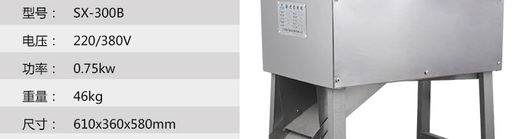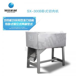 SX300B 臥式切肉機(jī),臥式切肉機(jī)均采用雙滾刀結(jié)構(gòu),有臥式和立式兩種型式。各種款式切肉機(jī)原動(dòng)力和刀梳、切肉部分的原理,結(jié)構(gòu)大致相同,都具有結(jié)構(gòu)緊湊,外形美觀、操作方便、效率高、耗電小、清潔保養(yǎng)容易、安全衛(wèi)生、切肉效果好等優(yōu)點(diǎn)。