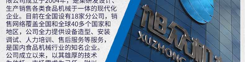 廣州旭眾食品機械有限公司是一家集科研開發(fā),生產(chǎn)設(shè)計,營銷服務(wù)為一體的現(xiàn)代化生產(chǎn)企業(yè)?,F(xiàn)代化生產(chǎn)車間,精湛制造技術(shù),所產(chǎn)機械歷經(jīng)市場重重考驗,不斷贏得海內(nèi)外客戶的贊譽。