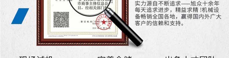 廣州旭眾食品機(jī)械有限公司是一家集科研開發(fā),生產(chǎn)設(shè)計(jì),營銷服務(wù)為一體的現(xiàn)代化生產(chǎn)企業(yè)?,F(xiàn)代化生產(chǎn)車間,精湛制造技術(shù),所產(chǎn)機(jī)械歷經(jīng)市場(chǎng)重重考驗(yàn),不斷贏得海內(nèi)外客戶的贊譽(yù)。