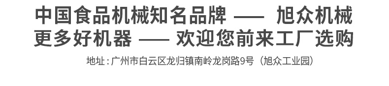 廣州旭眾食品機(jī)械有限公司是一家集科研開(kāi)發(fā),生產(chǎn)設(shè)計(jì),營(yíng)銷服務(wù)為一體的現(xiàn)代化生產(chǎn)企業(yè)?,F(xiàn)代化生產(chǎn)車間,精湛制造技術(shù),所產(chǎn)機(jī)械歷經(jīng)市場(chǎng)重重考驗(yàn),不斷贏得海內(nèi)外客戶的贊譽(yù)。