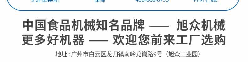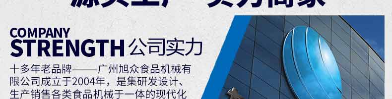廣州旭眾食品機(jī)械有限公司是一家集科研開發(fā),生產(chǎn)設(shè)計(jì),營(yíng)銷服務(wù)為一體的現(xiàn)代化生產(chǎn)企業(yè)?,F(xiàn)代化生產(chǎn)車間,精湛制造技術(shù),所產(chǎn)機(jī)械歷經(jīng)市場(chǎng)重重考驗(yàn),不斷贏得海內(nèi)外客戶的贊譽(yù)。